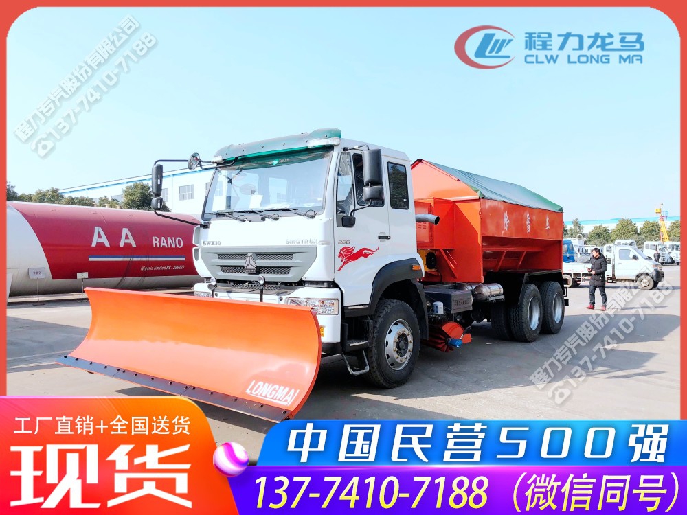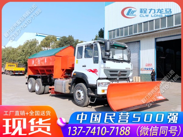 重汽多功能融雪撒布推雪车带中置滚刷的用途是清除道路上的冰雪,广泛使用于高等级公路、城市道路、机场、广场、风景区道路的除雪、融雪、除冰作业,相对于人工除雪,使用机械除雪具有更优的时效性,大幅提高除雪效率,减少人工劳动强度。使用重汽多功能融雪撒布推雪车带中置滚刷可以在冬季期间投入它们来确保道路上冰雪的清除以及行车的安全。除雪车安装的推雪铲或扫雪滚刷具有越障功能,能够很好的处理各种路面的雪和冰,如浮雪,薄雪,薄冰等,同时它可以在凹凸不平的路面行驶,作业及回避路障,工作效率高。