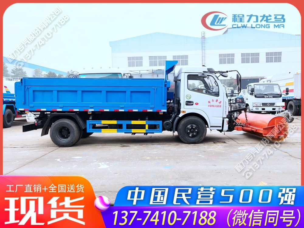 东风大多利卡自卸垃圾车带滚刷扫雪机,市政环卫及物业专用,转运垃圾和除雪两不误,现在下雪都用这个扫雪滚来清雪了,方便快捷,除雪效率高!东风大多利卡自卸垃圾车带滚刷扫雪机的用途是清除道路上的冰雪,广泛使用于高等级公路、城市道路、机场、广场、风景区道路的除雪、融雪、除冰作业,相对于人工除雪,使用机械除雪具有更优的时效性,大幅提高除雪效率,减少人工劳动强度。使用东风大多利卡自卸垃圾车带滚刷扫雪机可以在冬季期间投入它们来确保道路上冰雪的清除以及行车的安全。除雪车安装的推雪铲或扫雪滚刷具有越障功能,能够很好的处理各种路面的雪和冰,如浮雪,薄雪,薄冰等,同时它可以在凹凸不平的路面行驶,作业及回避路障,工作效率高。