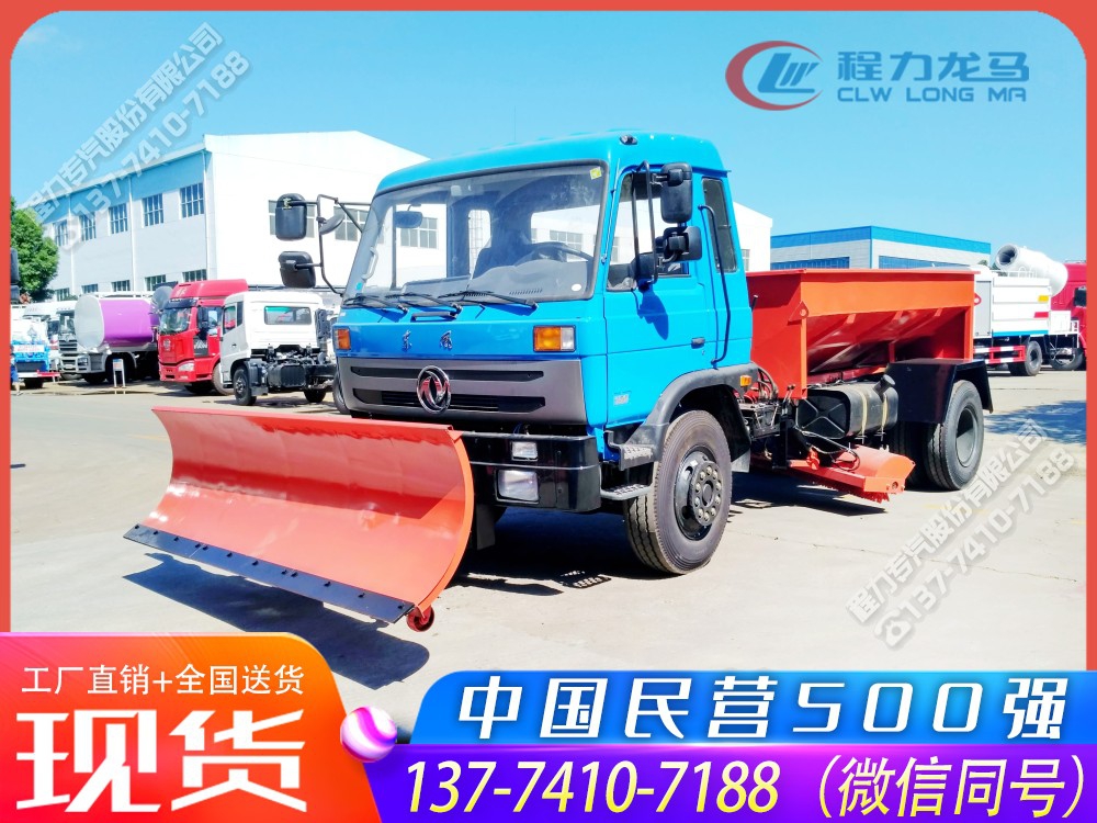 东风多功能除雪融雪剂洒布车采用前置推雪铲、后背融雪剂撒布机、中置小扫雪滚刷的结构设计,其中推雪铲清雪宽度可达3.3米,融雪撒布机容积6立方以上,小滚刷根据需求选配,东风多功能除雪融雪剂洒布车的用途是清除道路上的冰雪,广泛使用于高等级公路、城市道路、机场、广场、风景区道路的除雪、融雪、除冰作业,相对于人工除雪,使用机械除雪具有更优的时效性,大幅提高除雪效率,减少人工劳动强度。使用东风多功能除雪融雪剂洒布车可以在冬季期间投入它们来确保道路上冰雪的清除以及行车的安全。除雪车安装的推雪铲或扫雪滚刷具有越障功能,能够很好的处理各种路面的雪和冰,如浮雪,薄雪,薄冰等,同时它可以在凹凸不平的路面行驶,作业及回避路障,工作效率高。