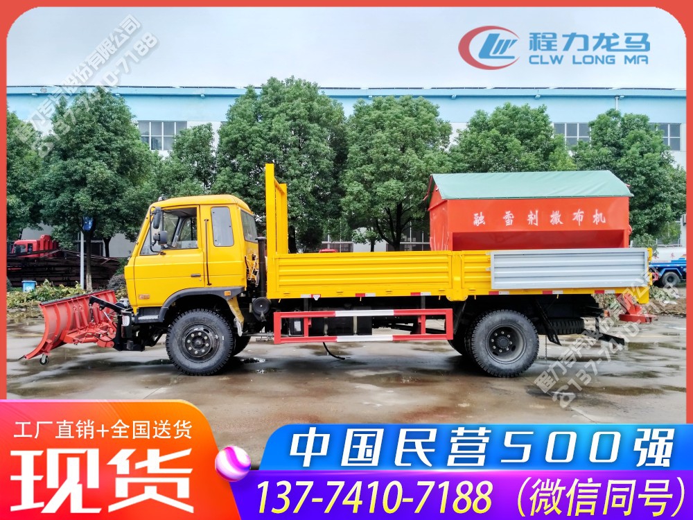 东风145多功能除雪撒布铲雪车具有前置铲雪功能,货厢里放置了一台融雪剂撒布机,主要用于下雪时道路融冰、融雪,并使用前置推雪铲把道路积雪进行清理,东风145多功能除雪撒布铲雪车的用途是清除道路上的冰雪,广泛使用于高等级公路、城市道路、机场、广场、风景区道路的除雪、融雪、除冰作业,相对于人工除雪,使用机械除雪具有更优的时效性,大幅提高除雪效率,减少人工劳动强度。使用东风145多功能除雪撒布铲雪车可以在冬季期间投入它们来确保道路上冰雪的清除以及行车的安全。除雪车安装的推雪铲或扫雪滚刷具有越障功能,能够很好的处理各种路面的雪和冰,如浮雪,薄雪,薄冰等,同时它可以在凹凸不平的路面行驶,作业及回避路障,工作效率高。