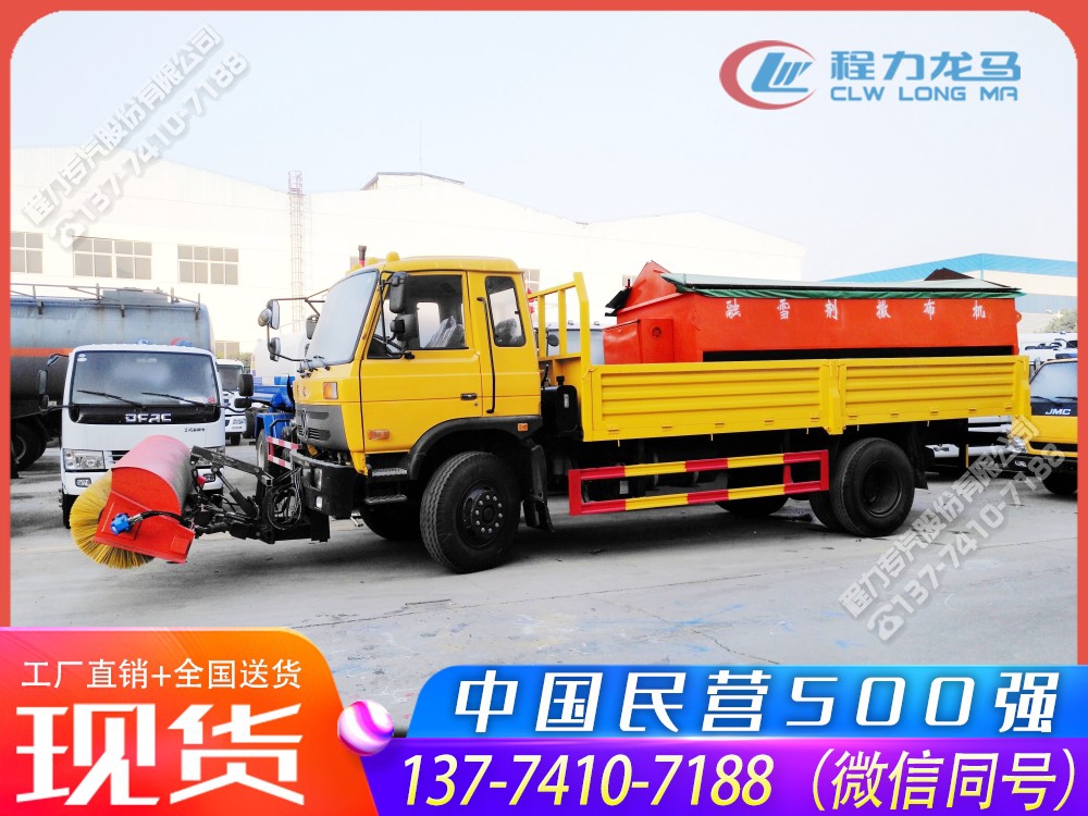 东风153除雪滚扫融雪撒布车,车辆型号CLW5160TCXD5,采用东风平头带卧底盘,经典耐用,配备一台融雪剂撒布机再加上一套扫雪滚刷,可谓是全能除雪车,东风153除雪滚扫融雪撒布车的用途是清除道路上的冰雪,广泛使用于高等级公路、城市道路、机场、广场、风景区道路的除雪、融雪、除冰作业,相对于人工除雪,使用机械除雪具有更优的时效性,大幅提高除雪效率,减少人工劳动强度。使用东风153除雪滚扫融雪撒布车CLW5160TCXD5可以在冬季期间投入它们来确保道路上冰雪的清除以及行车的安全。除雪车安装的推雪铲或扫雪滚刷具有越障功能,能够很好的处理各种路面的雪和冰,如浮雪,薄雪,薄冰等,同时它可以在凹凸不平的路面行驶,作业及回避路障,工作效率高。