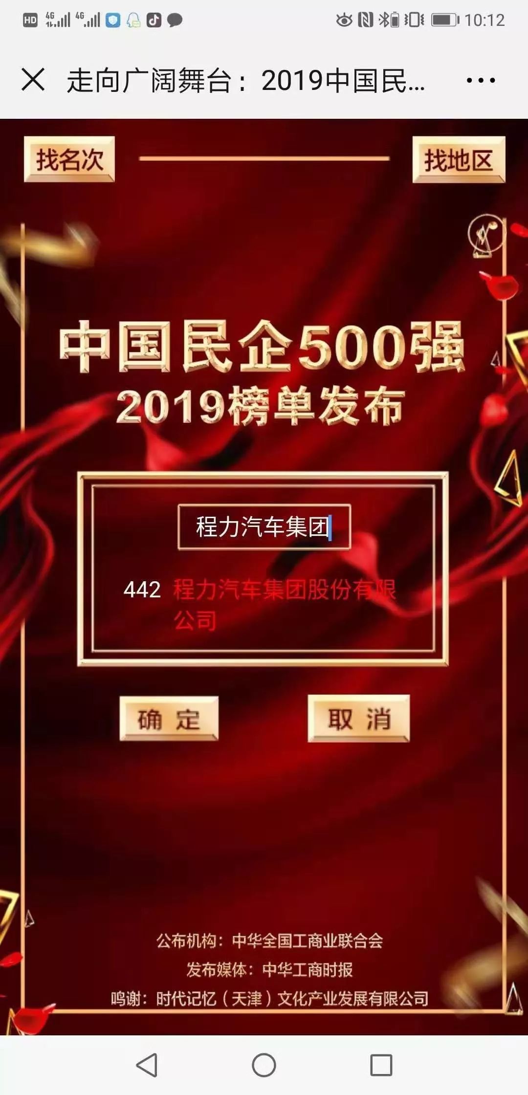 程力汽车集团入选2019年中国民企500强及中国民企制造业500强荣誉榜单