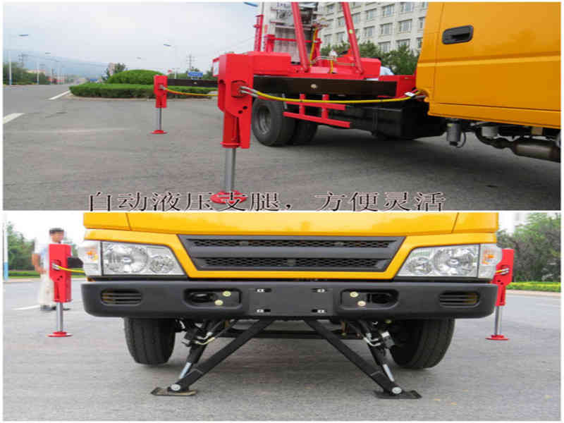车辆配制双向液压锁、双向带锁平衡阀、液流阀、发动机启停、应急泵、操作系统等主要部件均采用进口件。换向平稳,操作灵活方便;支腿与工作臂互锁,安全可靠,防止误操作;H/H型支腿,跨距大、稳定性好,支腿既可独立伸缩、又可联动,梯臂上装有报闪灯,用于作业时示廓、发出光报警信号。
