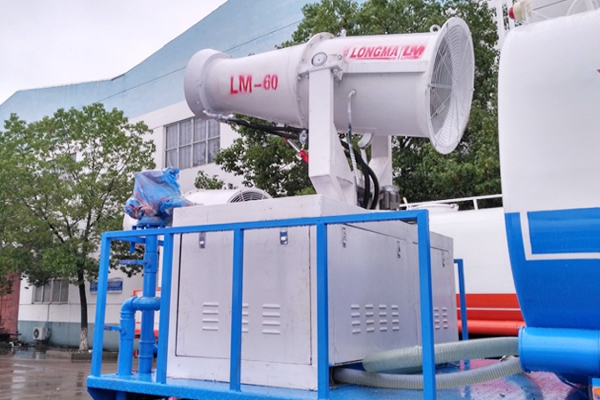 5.配套柴油发电机组供电安装在运输车辆上,操作灵活,使用安全可靠,遥控和人工控制操作,可随意控制调节水平旋转喷雾角度。