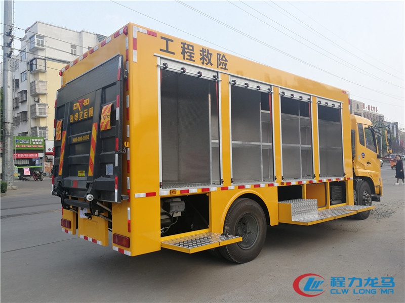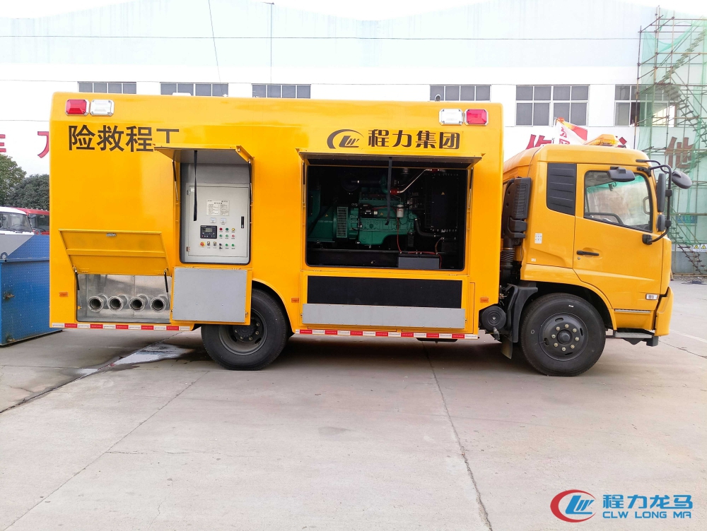 东风天锦大流量排水抢险车属于专项作业车,是将发电机组安装在具有隔音降噪功能的厢体内,形成降噪电站的形式,整合排水设备并集成于二类汽车底盘上的排水抢险移动泵站,适应于全天候的野外露天作业,具有整体性能稳定可靠、一体操作轻便实用、快速响应排水效率高、功能多样组合便利、用途广泛性价比高等特点,排水流量可达3000立方/小时。