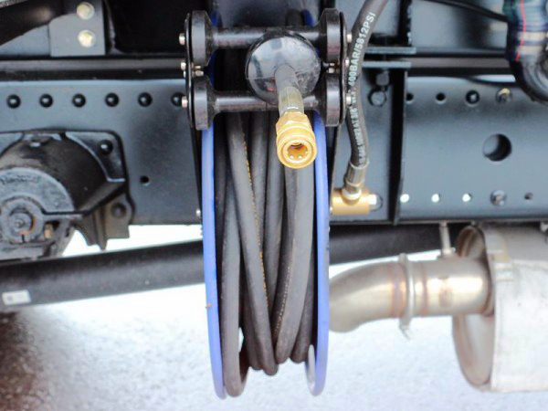 高压喷枪:该车安装有高压水枪快速接口,可快速连接18米手持高压冲洗水枪,用于自洁车身,清洗小广告等功能,还可清洗路标、广告牌、高架路等。