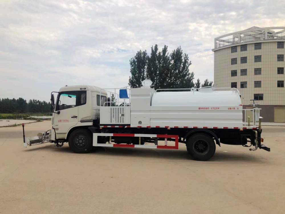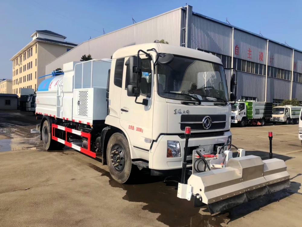 前冲、后洒:本车具有洒水车的所有功能,能够像洒水车一样对路面进行冲洗及洒水,前冲宽度可达21米以上,后洒喷出水状呈扇形状态可对公路进行养护保洁。