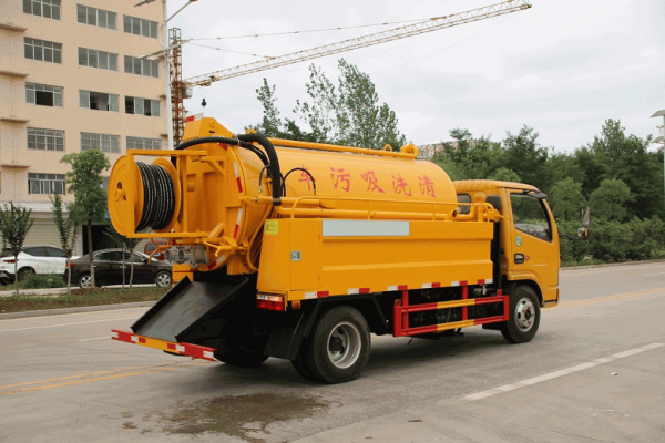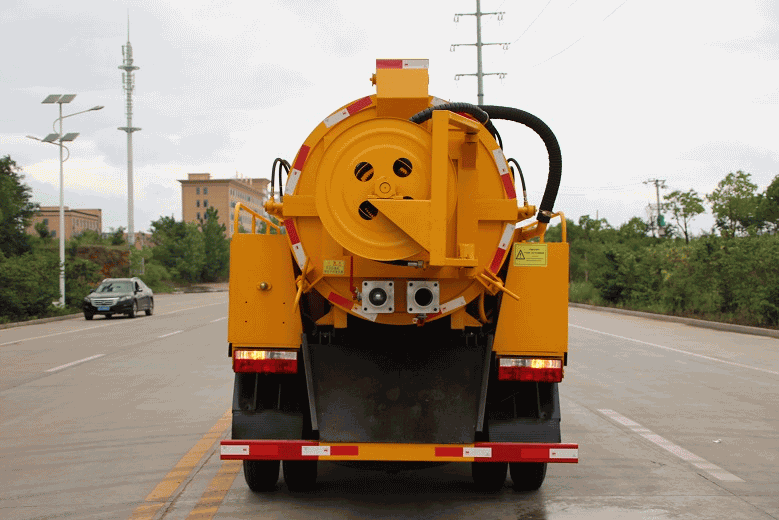 吸污部分:带视污窗、自流口、8米吸污管一根、真空吸污泵。罐体带液压举升功能,可自吸自排,后门液压开闭。