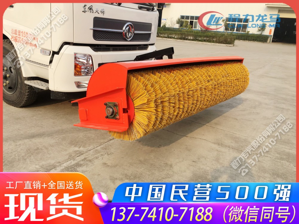 扫雪辊刷借助汽车或装载机前进的动力,通过操纵机构各按钮,将雪刷角度调整到倾斜30°-35°位置后,利用升降装置升降高度,以及行车速度将积雪推至道边。可与多种汽车底盘配套使用,采用除雪铲、扫雪滚刷可互换的快速连接机构,扫雪滚刷与车辆的安装及拆卸简单方便,作业安全可靠;在除雪作业中,扫雪滚刷随路面横坡坡度,自动调节功能