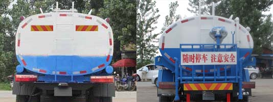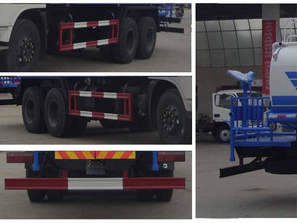 | 其他 | 1、选装不带洒水平台。2、运输介质:水,密度:1000千克/立方米,罐体有效容积:14.80立方米,带洒水平台时,整车长度(mm)/罐体外形尺寸(长×宽×高)(mm)/前悬(mm)/轴距(mm)对应关系:9660(9860)/6500×2300×1450/1250(1450)/4350+1300,10060(10260)/6900×2200×1430/1250(1450)/4750+1300;不带洒水平台时,整车长度(mm)/罐体外形尺寸(长×宽×高)(mm)/前悬(mm)/轴距(mm)对应关系:9660(9860)/6900×2200×1430/1250(1450)/4350+1300,10060(10260)/7300×2160×1380/1250(1450)/4750+1300;3、侧面和后部防护装置材料材质:Q23,侧,后防护均用焊接连接,后部防护断面尺寸(mm):150×50,后部防护离地高度:500mm。4、ABS的型号及生产厂家:J ABS/焦作博瑞克控制技术有限公司。5、可选装椭圆罐体,尺寸不变。6、随底盘选装驾驶室。7、专用装置:罐体,主要用于路面洒水及园林绿化。 |