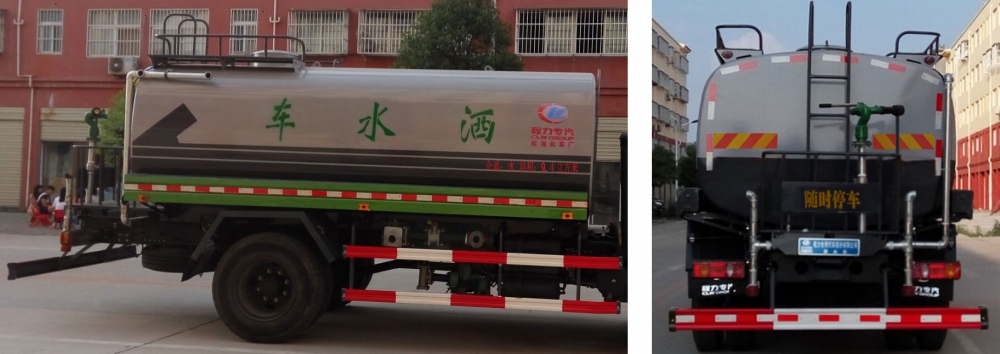 洒水车采用东风牌原厂EQ1168GLJ4底盘,该车辆轴距4700mm,洒水车整车型号为CLW5161GSST5,配置YC6J180-50发动机,功率132kw,排放标准达到国Ⅴ,洒水车CLW5161GSST5外形长宽高尺寸符合国家标准。