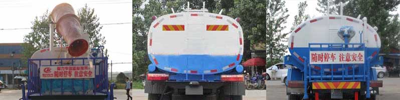 | 其他 | 1、选装不带洒水平台及选装带喷雾机组;2、运输介质:水,密度:1000千克/立方米,罐体有效容积7.66立方米,a、带洒水平台时,罐体外形尺寸(长×宽×高)(mm)为4200×2000×1340;b、不带洒水平台时,罐体外形尺寸(长×宽×高)(mm)为4500×1900×1300;c、带喷雾机组时,罐体外形尺寸(长×宽×高)(mm)为3600×2100×1400;3、侧防护及后下部防护装置均采用Q23材质,均采用焊接连接, 后部防护断面尺寸(mm):150×50,后部防护离地高度:450(mm);4、可选装椭圆罐体;5、ABS系统生产厂家:襄阳东风隆诚机械有限责任公司,型号 ;ABS/ASR-24V-4S/4M;6、随底盘选装驾驶室。6、专用装置:罐体,主要用于路面洒水及园林绿化。 |