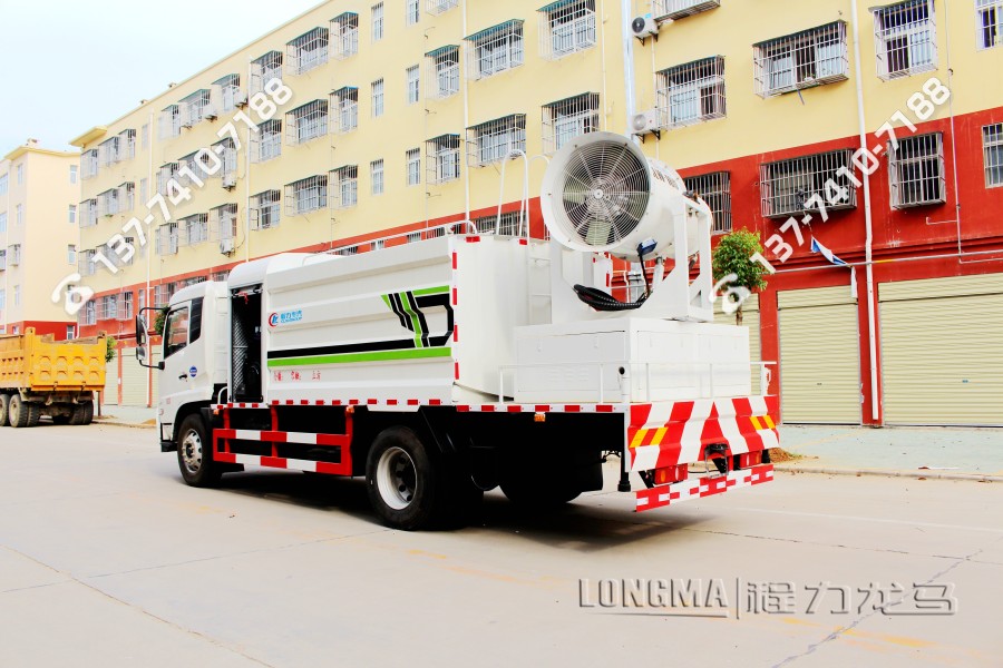 东风商用车有限公司其它说明 专用装置为抑尘雾炮,用于城市抑尘,整车长度/前悬/轴距/后悬/后伸的对应关系为(mm):8390/1400/3800/2470/720,8540/1400/3950/2470/720,9020/1400/4200/2700/720,9220/1400/4500/2700/620,9220/1430/4500/2670/620,9320/1430/4500/2670/720,9320/1400/4500/2700/720,9520/1400/4700/2700/720,9820/1400/5000/2700/720,10120/1400/5300/2700/720,10620/1400/5800/2700/720;侧防护及后下部防护装置均采用Q23**材质,均采用焊接连接,后下部防护尺寸:120×50(mm),离地面高度400mm.ABS型号/生产厂家:3631010-C2000/东科克诺尔商用车制动系统(十堰)有限公司,ABS 8/东科克诺尔商用车制动系统(十堰)有限公司, 4460046450/威伯科汽车控制系统(中国)有限公司.当整备质量为(kg):9970时,轴距为(mm):3800,3950,4200,4500,当整备质量为(kg):10770时,轴距为(mm)4700,5000,5300,5800.当选装抑尘距离为60米抑尘雾炮时,后伸为620mm,当选装抑尘距离为80米抑尘雾炮时,后伸为720mm.随底盘选装驾驶室. 专用功能 罐体容积 (m³) 11.3立方 罐体材质 Q235优质碳钢 洒水宽度 (m) ≥14m 绿化洒水炮射程 (m) 柱状≥28m,雾状≥15m 雾炮喷雾机射程 (m) 选配50-100米 配置说明 雾炮机具有自主专利技术,专利号为(201621305361.8 / 201630487869.3),十五年制造经验,产品**通过湖北省及本地质检局检验合格,可根据需求选配不同的射程规格,可远程无线遥控操作作业,采用国内外知名发电机组及风扇电机、电控系统、大功率水泵。抑尘车具有洒水车的**功能:前部冲洗路面喷洒装置、后部扇形降尘喷洒装置,两侧喷洒装置,后部大工作平台、平台上安装绿化洒水炮(炮喷射形状可调),可调直冲状、大雨、中雨、毛毛雨,可连续调节,其它:自流阀及消防接头、水管3米2根,罐体防腐处理。 选装功能 喷雾机可选不锈钢材质,根据车型大小不同可选配一车多用功能,如前置推雪铲、扫雪滚刷、前置高速护栏清洗装置、道路高压清洗装置、墙壁清洗及光伏发电板清洗装置。 行业解决方案 本公司专业生产抑尘车及喷雾机产品,同时可根据场地使用环境定制:多功能抑尘车、铁路专用抑尘车、爆破专用抑尘车、高炮式抑尘车、移动式喷雾机、车载分离式喷雾机,高塔式喷雾机,来电获取专属详细解决方案。 车载式喷雾机主要技术参数(50-100米):