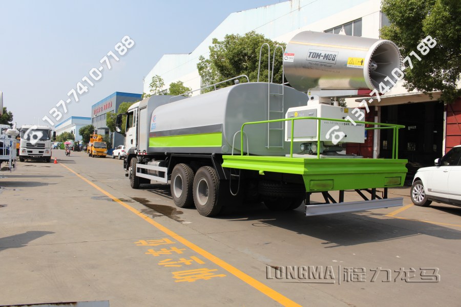 中国重型汽车集团有限公司其它说明 专用装置为抑尘雾炮,用于城市抑尘.整车长/轴距/后伸对应关系为(mm):10600/3900+1350/700,10625/3875+1400/700,11000/4300+1350/700,11220/4350+1350/920,11245/4275+1400/920,11520/4600+1350/920,11545/4575+1400/920,11600/4300+1350/1300,11700/5000+1350/700,11725/4975+1400/700.防护材料:Q23**碳钢,连接方式:左右侧面及后部防护均采用焊接连接,后部防护断面尺寸(mm):120×50,后部防护离地高度(mm):500.ABS系统控制器生产企业/型号为威伯科(上海)管理有限公司/4460046300.当整备质量为(kg):14180时,轴距为(mm):3900+1350,3875+1400,4275+1400,4300+1350,4350+1350,当整备质量为(kg):15500时,轴距为(mm):4600+1350,4575+1400,4975+1400,5000+1350.随底盘选装驾驶室. 专用功能 罐体容积 (m³) 16立方 罐体材质 Q235优质碳钢 洒水宽度 (m) ≥14m 绿化洒水炮射程 (m) 柱状≥28m,雾状≥15m 雾炮喷雾机射程 (m) 选配50-120米 配置说明 雾炮机具有自主专利技术,专利号为(201621305361.8 / 201630487869.3),十五年制造经验,产品**通过湖北省及本地质检局检验合格,可根据需求选配不同的射程规格,可远程无线遥控操作作业,采用国内外知名发电机组及风扇电机、电控系统、大功率水泵。抑尘车具有洒水车的**功能:前部冲洗路面喷洒装置、后部扇形降尘喷洒装置,两侧喷洒装置,后部大工作平台、平台上安装绿化洒水炮(炮喷射形状可调),可调直冲状、大雨、中雨、毛毛雨,可连续调节,其它:自流阀及消防接头、水管3米2根,罐体防腐处理。 选装功能 喷雾机可选不锈钢材质,根据车型大小不同可选配一车多用功能,如前置推雪铲、扫雪滚刷、前置高速护栏清洗装置、道路高压清洗装置、墙壁清洗及光伏发电板清洗装置。 行业解决方案 本公司专业生产抑尘车及喷雾机产品,同时可根据场地使用环境定制:多功能抑尘车、铁路专用抑尘车、爆破专用抑尘车、高炮式抑尘车、移动式喷雾机、车载分离式喷雾机,高塔式喷雾机,来电获取专属详细解决方案。 车载式喷雾机主要技术参数(60-120米):