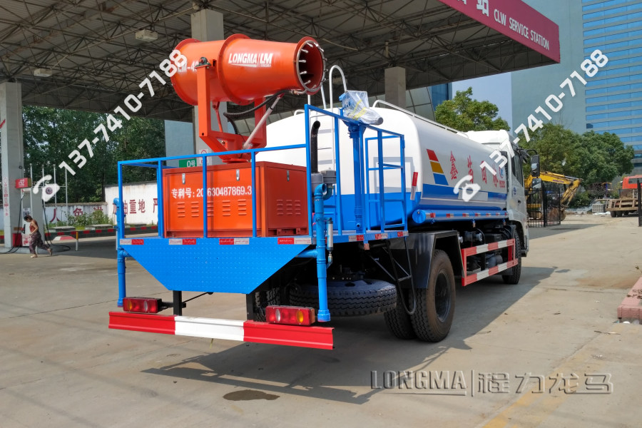 东风康明斯发动机有限公司其它说明 1、运输介质为:抑尘剂,密度:780千克/立方米.罐体有效容积9.90立方米;整车长度(mm)、罐体外形尺寸(长×长轴×短轴)(mm)与轴距(mm)的对应关系:7950/4000×2300×1500/3950,8500/4000×2300×1500/4500, 8700/4200×2250×1450/4700,9000/4500×2200×1400/5000;2、左右侧面防护采用Q23**碳钢,后下部防护采用Q235B碳钢,均采用焊接连接,后下部防护断面尺寸(mm):120×50,后下部防护离地高度(mm):490。3、ABS型号:3631010-C2000,4460046440;生产厂家:东科克诺尔商用车制动系统(十堰)有限公司,威伯科汽车控制系统(中国)有限公司。4、随底盘选装驾驶室。专用装置:抑尘雾炮, 型号:LM-40 厂家:湖北龙马汽车装备有限公司。 专用功能 罐体容积 (m³) 12立方 罐体材质 Q235优质碳钢 洒水宽度 (m) ≥14m 绿化洒水炮射程 (m) 柱状≥28m,雾状≥15m 雾炮喷雾机射程 (m) 选配30-40米 配置说明 雾炮机具有自主专利技术,专利号为(201621305361.8 / 201630487869.3),十五年制造经验,产品**通过湖北省及本地质检局检验合格,可根据需求选配不同的射程规格,可远程无线遥控操作作业,采用国内外知名发电机组及风扇电机、电控系统、大功率水泵。抑尘车具有洒水车的**功能:前部冲洗路面喷洒装置、后部扇形降尘喷洒装置,两侧喷洒装置,后部大工作平台、平台上安装绿化洒水炮(炮喷射形状可调),可调直冲状、大雨、中雨、毛毛雨,可连续调节,其它:自流阀及消防接头、水管3米2根,罐体防腐处理。 选装功能 喷雾机可选不锈钢材质,根据车型大小不同可选配一车多用功能,如前置推雪铲、扫雪滚刷、前置高速护栏清洗装置、道路高压清洗装置、墙壁清洗及光伏发电板清洗装置。 行业解决方案 本公司专业生产抑尘车及喷雾机产品,同时可根据场地使用环境定制:多功能抑尘车、铁路专用抑尘车、爆破专用抑尘车、高炮式抑尘车、移动式喷雾机、车载分离式喷雾机,高塔式喷雾机,来电获取专属详细解决方案。 车载式喷雾机主要技术参数(30-40米):