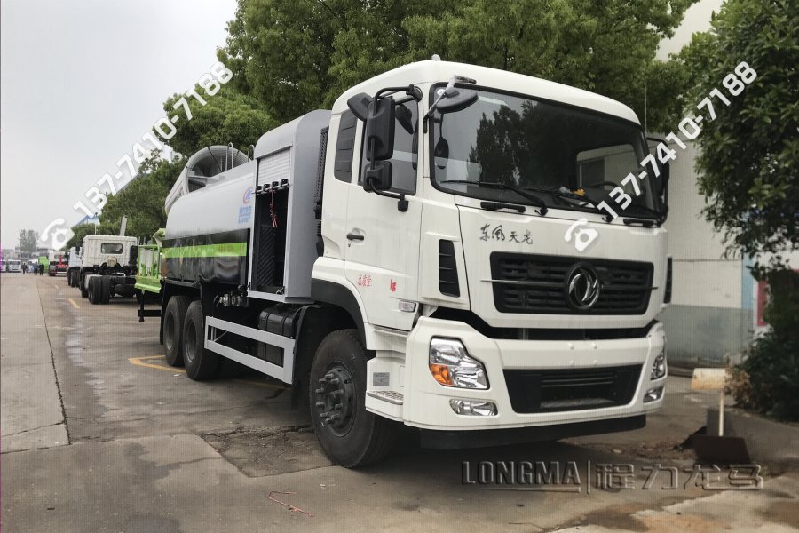 项 目 东风天龙后双桥抑尘车主要性能参数 基本参数 产品型号 CLW5251TDYD5型多功能抑尘车 生产地址 湖北随州南郊汽车工业园B区5幢抑尘车专业厂 外形尺寸 (mm) 11400,10820X2500X3750 底盘型号 DFL1250A13 底盘轴距 (mm) 4350+1350,5350+1350,5700+1350,3800+1350,4600+1350 底盘轴数 3 底盘轴荷 (kg) 7000/18000(二轴组) 整备质量 (kg) 15060 总质量 (kg) 25000 额定载质量 (kg) 9810,9745 接近角/离去角 (°) 18/8,18/9,18/10 前悬/后悬 (mm) 1500/3350,1500/3320,1500/2350,1500/2000,1480/3370,1480/2370,1480/2020,1480/3340 高车速 (km/h) 90 准乘人数 (人) 2,3 轮胎规格 11.00-20 18PR,11.00R20 18PR,295/80R22.5 18PR,12.00R20 16PR 轮胎数量 (个) 10+1(备胎) 弹簧片数 (前/后) 8/9,8/10,9/10 前轮距 (mm) 2040,1965,2020 后轮距 (mm) 1860/1860,1880/1880 排放标准 GB3847-2005,GB17691-2005国Ⅴ 燃料种类 柴油 发动机 发动机型号 ISD245 50