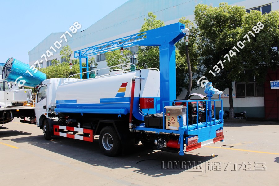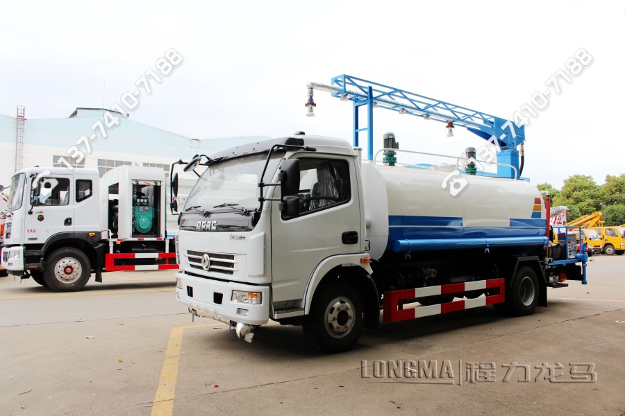 4)前冲洗、后洒水以及后作业水炮适用于城市道路环保降尘、道路清洗、广告牌清洗环保作业,左右绿化浇灌装置可用于公路绿化带的浇灌作业。