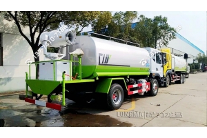 4)前冲洗、后洒水以及后作业水炮适用于城市道路环保降尘、道路清洗、广告牌清洗环保作业,左右绿化浇灌装置可用于公路绿化带的浇灌作业。