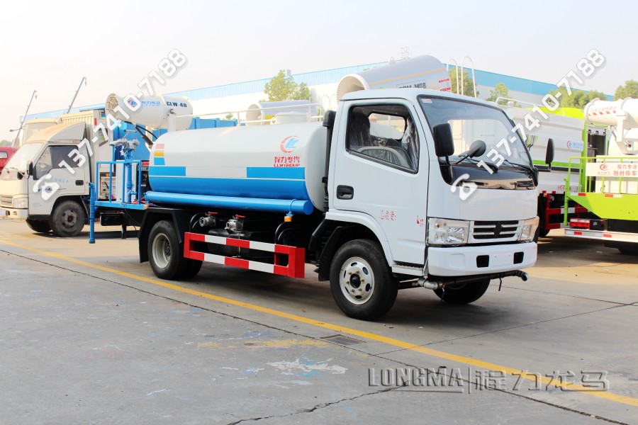 4)前冲洗、后洒水以及后作业水炮适用于城市道路环保降尘、道路清洗、广告牌清洗环保作业,左右绿化浇灌装置可用于公路绿化带的浇灌作业。