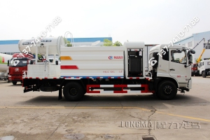 4)前冲洗、后洒水以及后作业水炮适用于城市道路环保降尘、道路清洗、广告牌清洗环保作业,左右绿化浇灌装置可用于公路绿化带的浇灌作业。