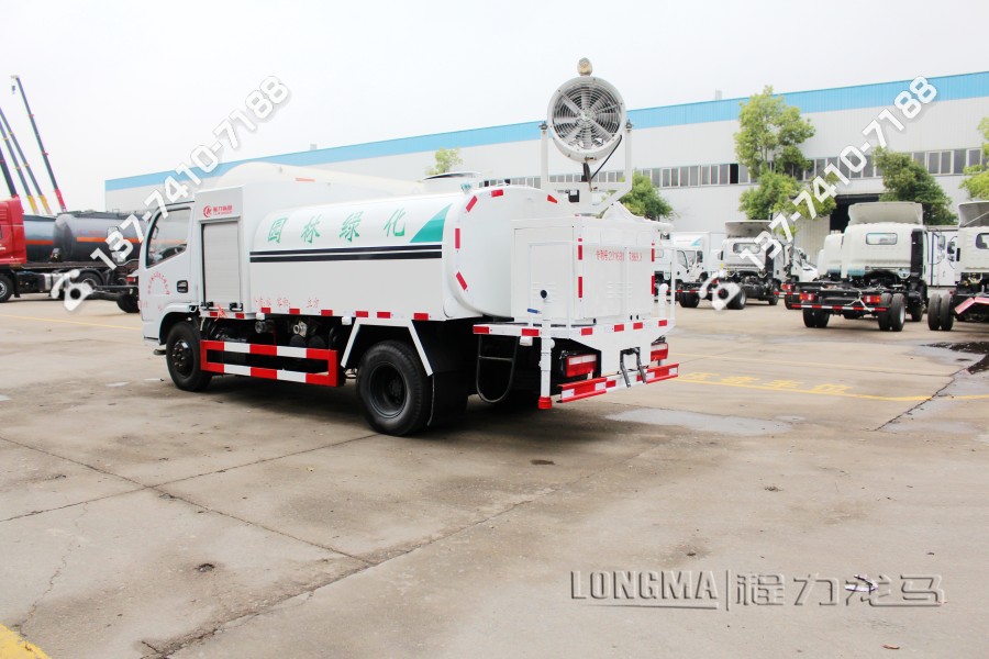 4)前冲洗、后洒水以及后作业水炮适用于城市道路环保降尘、道路清洗、广告牌清洗环保作业,左右绿化浇灌装置可用于公路绿化带的浇灌作业。