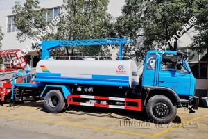 4)前冲洗、后洒水以及后作业水炮适用于城市道路环保降尘、道路清洗、广告牌清洗环保作业,左右绿化浇灌装置可用于公路绿化带的浇灌作业。