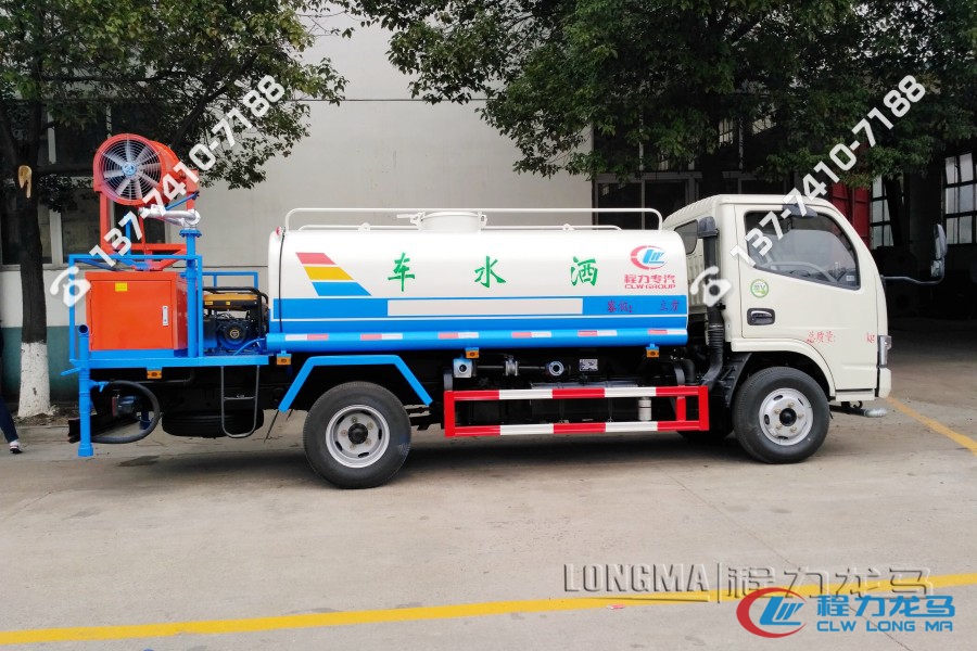 项 目 东风小多利卡雾炮洒水车主要性能参数 基本参数 产品型号 CLW5071GPSE5型绿化喷洒车 生产地址 湖北随州南郊汽车工业园B区5幢抑尘车专业厂 外形尺寸 (mm) 6554,5990X1980X2640,2390 底盘型号 EQ1070SJ3BDF 底盘轴距 (mm) 3308,2800 底盘轴数 2 底盘轴荷 (kg) 2640/4720 整备质量 (kg) 3610,3430 总质量 (kg) 7360 额定载质量 (kg) 3620,3800 接近角/离去角 (°) 20/9,13 前悬/后悬 (mm) 1040/2206,1642 高车速 (km/h) 99 准乘人数 (人) 2 轮胎规格 7.00-16,7.00R16 轮胎数量 (个) 6+1(备胎) 弹簧片数 (前/后) 6/6+5 前轮距 (mm) 1503,1485,1519,1595 后轮距 (mm) 1494,1516,1540 排放标准 GB17691-2005国Ⅴ,GB3847-2005 燃料种类 柴油 发动机 发动机型号 CY4BK551