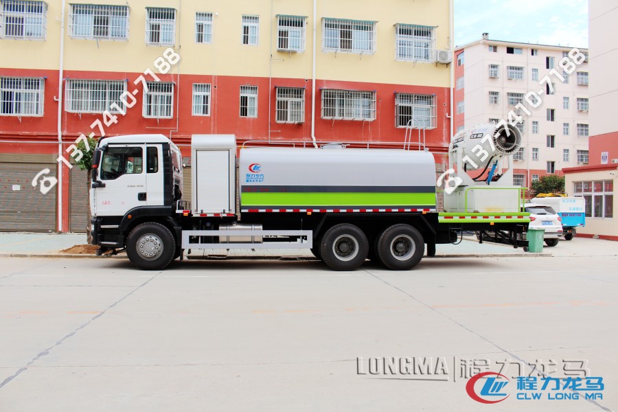 中国重型汽车集团有限公司其它说明 专用装置为抑尘雾炮,用于城市抑尘.整车长/轴距对应关系为(mm):9700/3800+1350,9725/3775+1400,10200/4300+1350,10225/4275+1400,10500/4600+1350,10525/4575+1400,10900/5000+1350,10925/4975+1400,11100/5200+1350,11125/5175+1400,11700/5800+1350,11725/5775+1400;此车选装不同的抑尘雾炮,当选择抑尘雾炮时,此整车长/轴距/后伸对应关系为(mm):10820/4300+1350/620,10920/4300+1350/720,11130/4300+1350/930,11520/4300+1350/1320,11145/4575+1400/620,11245/4575+1400/720.防护材料:Q23**碳钢,连接方式:左右侧面及后部防护均采用焊接连接,后部防护断面尺寸(mm):120×50,后部防护离地高度(mm):500. ABS系统型号为4460046300,生产企业为威伯科汽车控制系统(中国)有限公司.随底盘选装驾驶室. 专用功能 罐体容积 (m³) 16立方 罐体材质 Q235优质碳钢 洒水宽度 (m) ≥14m 绿化洒水炮射程 (m) 柱状≥28m,雾状≥15m 雾炮喷雾机射程 (m) 选配50-120米 配置说明 雾炮机具有自主专利技术,专利号为(201621305361.8 / 201630487869.3),十五年制造经验,产品**通过湖北省及本地质检局检验合格,可根据需求选配不同的射程规格,可远程无线遥控操作作业,采用国内外知名发电机组及风扇电机、电控系统、大功率水泵。抑尘车具有洒水车的**功能:前部冲洗路面喷洒装置、后部扇形降尘喷洒装置,两侧喷洒装置,后部大工作平台、平台上安装绿化洒水炮(炮喷射形状可调),可调直冲状、大雨、中雨、毛毛雨,可连续调节,其它:自流阀及消防接头、水管3米2根,罐体防腐处理。 选装功能 喷雾机可选不锈钢材质,根据车型大小不同可选配一车多用功能,如前置推雪铲、扫雪滚刷、前置高速护栏清洗装置、道路高压清洗装置、墙壁清洗及光伏发电板清洗装置。 行业解决方案 本公司专业生产抑尘车及喷雾机产品,同时可根据场地使用环境定制:多功能抑尘车、铁路专用抑尘车、爆破专用抑尘车、高炮式抑尘车、移动式喷雾机、车载分离式喷雾机,高塔式喷雾机,来电获取专属详细解决方案。 车载式喷雾机主要技术参数(60-120米):