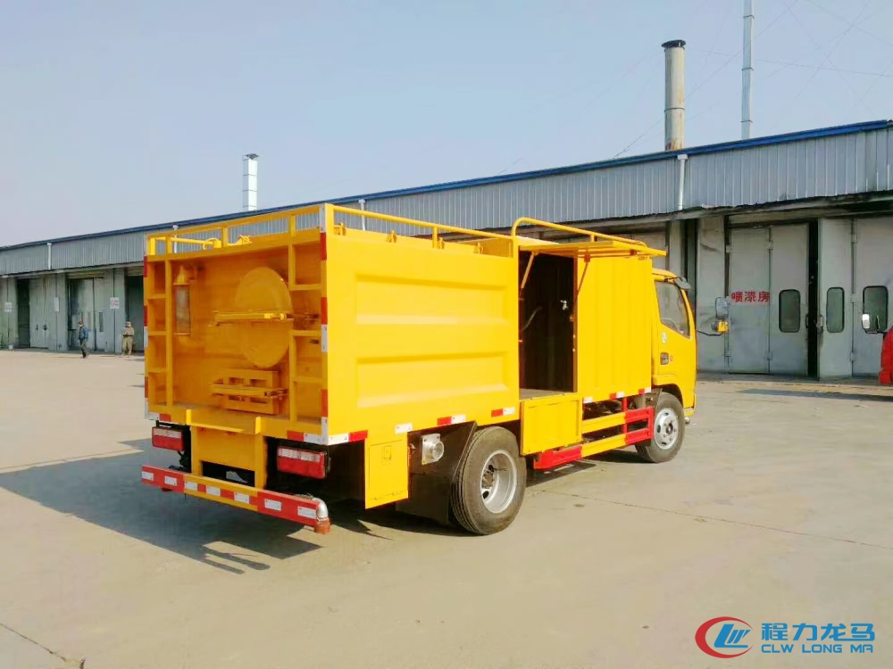 东风小多利卡D6污水净化处理车的常规配置: 80的吸污管有4根,每根长7米,合计28米,配有100米电线一卷,实际长度为95米,其中5米用于配电框到电机和电线绞盘,剩下90米用于连接外部电源。