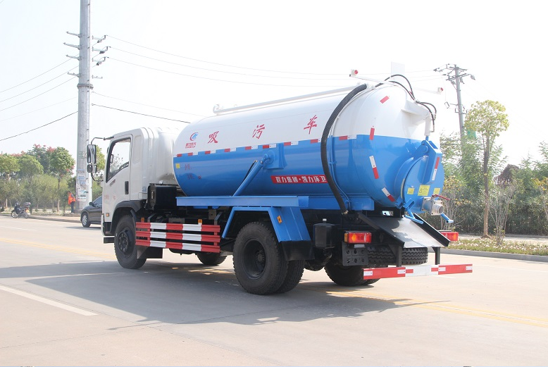 吸污车上装配置:专用部分由取力器、传动轴、真空吸污泵、压力罐体、液压部分,管网系统、真空压力表、视粪窗、洗手装置等组成,随车配置大功率真空吸污泵和优质液压系统,罐体封头一次压铸成型、罐体可后开、双顶自卸。罐内污物可通过后盖直接倾倒,具有真空度高(比吸粪车的吸力更大)、吨位大、效率高、用途更广泛等特点。油水分离器,水气分离器,液压自卸装置,专用真空吸污泵,容积压力表,吸物导管,自流阀,真空罐体,连通器(视粪窗),全自动防溢阀,液压套件。原装意大利HPP进口高压泵ES122/130,压力:16MPA,流量:130L/min,压力大;配备10个异形枪头,60米高压管。采用国内技术的吸污专用泵,吸力大,吸程远,特别适合于市政环卫,厂区,矿区,小区等下水管道内的淤积物的抽吸,装运和排卸,尤其是可吸下水道泥浆,淤泥,石子,砖块等较大物体,含水量较小等物质。自吸自排,寿命长,工作速度快,运输方便。