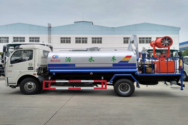 多功能园林绿化喷雾车带30-40米雾炮机,抑尘喷洒水车是在国家已定型生产的东风二类底盘的基础上改装而成的,它的主要结构和专用功能配置有: