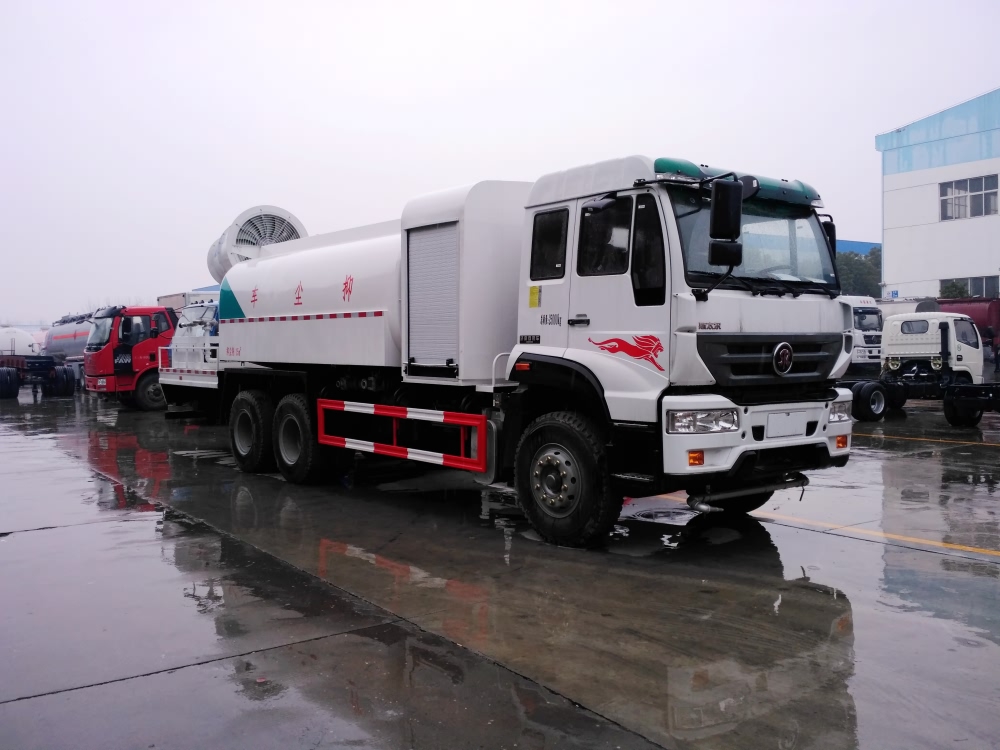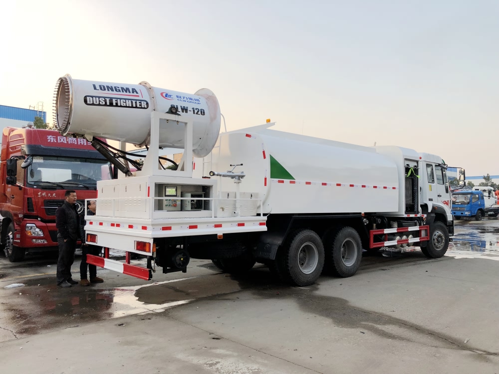 重汽斯太尔后双桥抑尘车喷雾机配置:CLW-100型,副发动机为120KW发电机组(山东潍坊发电机组), 11KW不锈钢多级离心泵,无线遥控操作,及手动操作.雾化距离80米(室内静风射程)实际射程:(雾化射程会受湿度、温度、风速等各方面天气因素的影响,另外天气干燥地区一部分在空中被蒸发掉)。
