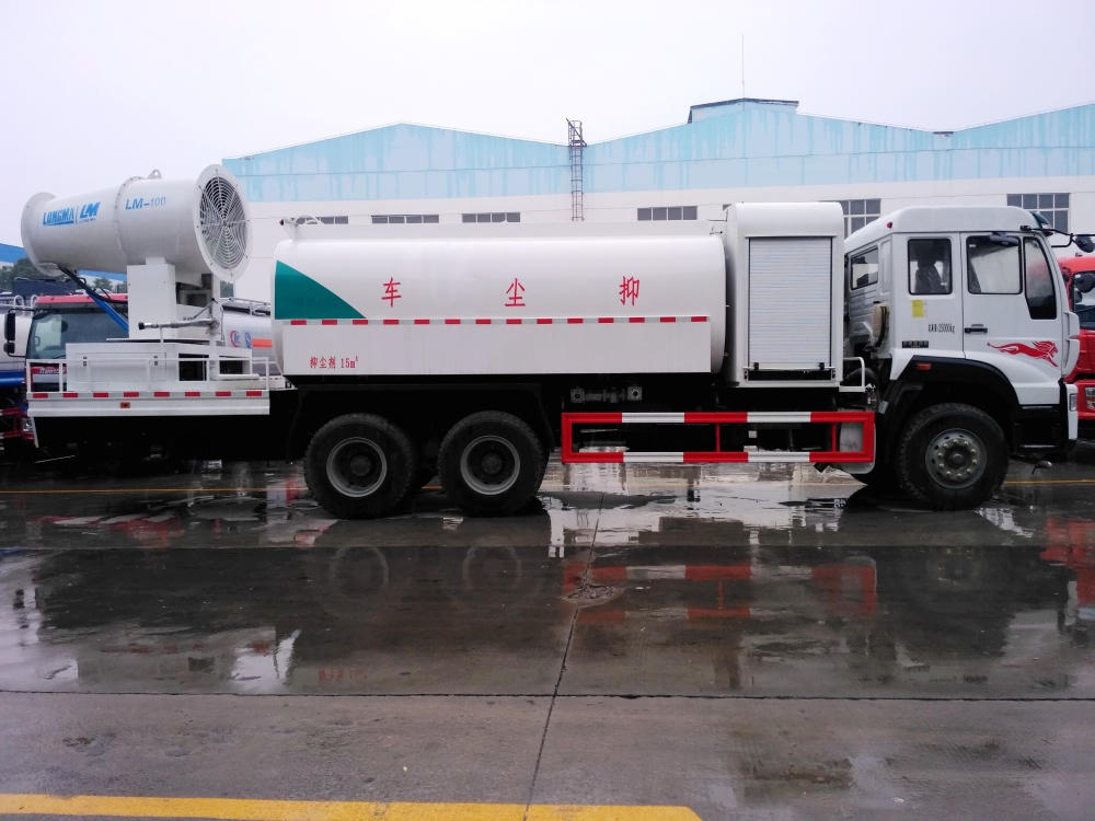 重汽斯太尔后双桥抑尘车后部加装操作平台,平台上安装高压水炮及60-120米雾炮机,底盘采用重汽原厂后双桥底盘,豪华驾驶室,重汽280马力发动机,10档变速箱,10.00钢丝胎带备胎,原装空调,ABS,行驶记录仪,有环保,有免征。重汽斯太尔后双桥抑尘车上装配置:罐体容积15-17吨,罐体为椭圆罐,罐体内部做防腐,主管路镀锌,采用亿丰60/90大流量水泵,消防接口可自流,音乐喇叭,80米喷雾机组。