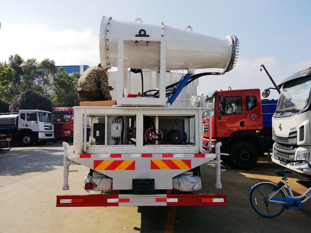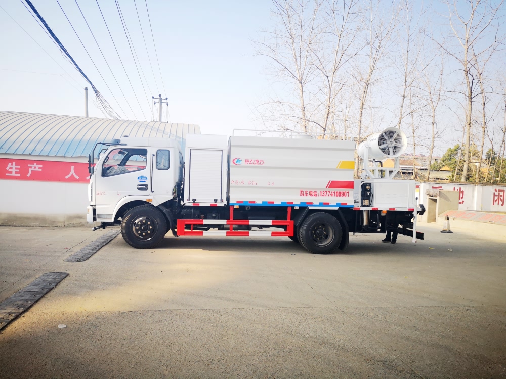 东风大多利卡多功能抑尘车采用多利卡排半驾驶室,其轴距为3950mm,更大的轴距使得该车辆罐体容积可达9立方以上,原装朝柴170马力发动机,国五排放标准,底盘具有方向助力,断气刹,ABS,中拉门锁,电动门窗等配置,选用8.25R20钢丝胎,更加适用于工矿企业及建筑工地等路面环境。东风大多利卡多功能抑尘车可选配30-60米的雾炮机组,操作手柄可在室外操作,无线遥控操作距离可达100米。