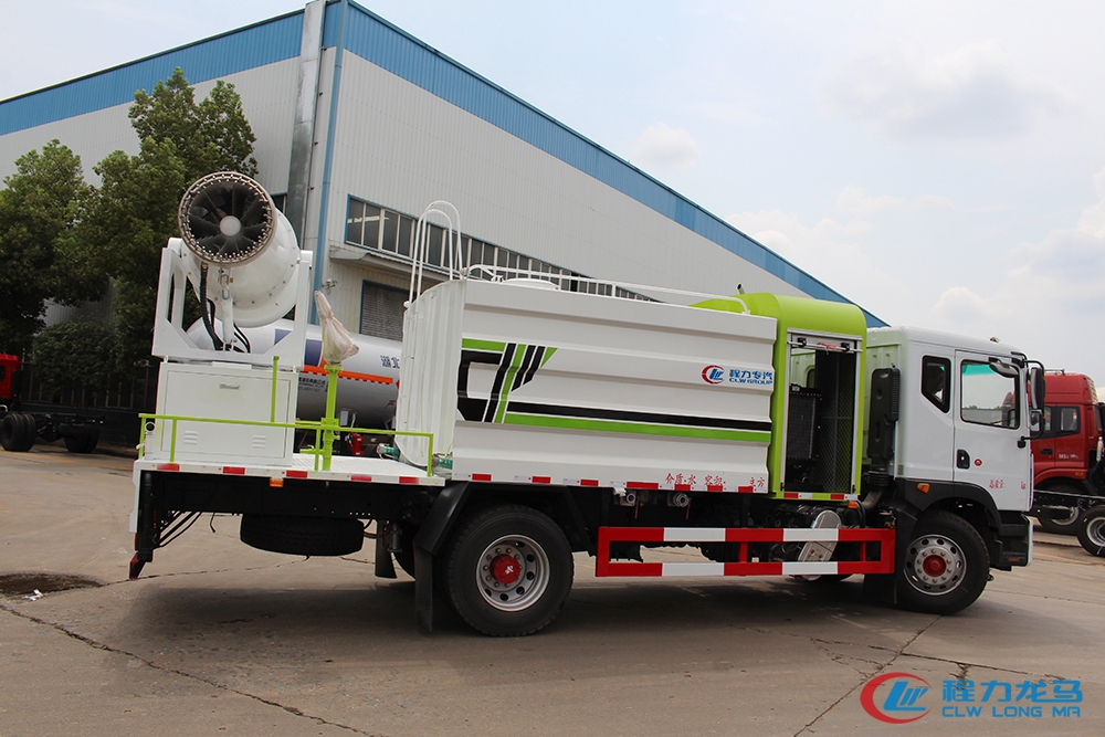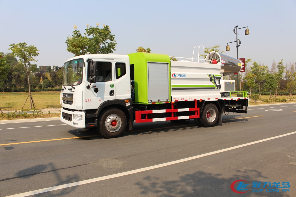 东风多利卡D9抑尘车采用东风新款多利卡D9系列底盘生产,轴距4500mm,底盘发动机为康明斯210马力,295真空胎,东风6档箱,国六排放标准,罐体容积:10立方,罐体钢板采用Q235碳钢钢材,采用方形瓦楞设计,外观大气靓丽,后工作平台加装率车载式风送喷雾机,喷药炮雾化效果好,可远程喷雾,东风多利卡D9抑尘车带前冲后洒、侧喷、平台高炮、自流阀及消防接头各1个、标配亿丰泵或金龙泵 ,可选装60-120米喷雾机。