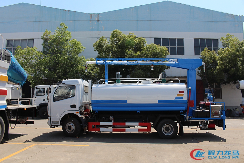 | 配备大功率洒水泵,具有自吸自排功能,垂直吸程>6米。带前部冲洗路面喷洒装置、后部扇形降尘喷洒装置,两侧面喷洒装置,后部工作平台、平台上安装绿化洒水炮(炮喷射形状可调),可调直冲状、大雨、中雨、毛毛雨,可连续调节,自流阀及消防接头各1个、水管3米2根。罐体内做环氧树脂防腐处理。 | |||||