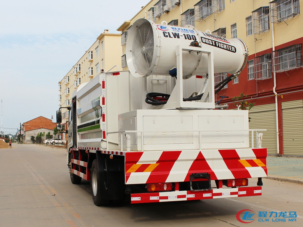 东风天锦抑尘车采用东风新款天锦系列底盘生产,轴距4700mm,底盘发动机为康明斯210马力,275真空胎,东风6档箱,国六排放标准,罐体容积:10立方,罐体钢板采用Q235碳钢钢材,采用方形瓦楞设计,外观大气靓丽,后工作平台加装率车载式风送喷雾机,喷药炮雾化效果好,可远程喷雾,东风天锦抑尘车带前冲后洒、侧喷、平台高炮、自流阀及消防接头各1个、标配亿丰泵或金龙泵 ,可选装50-100米喷雾机。